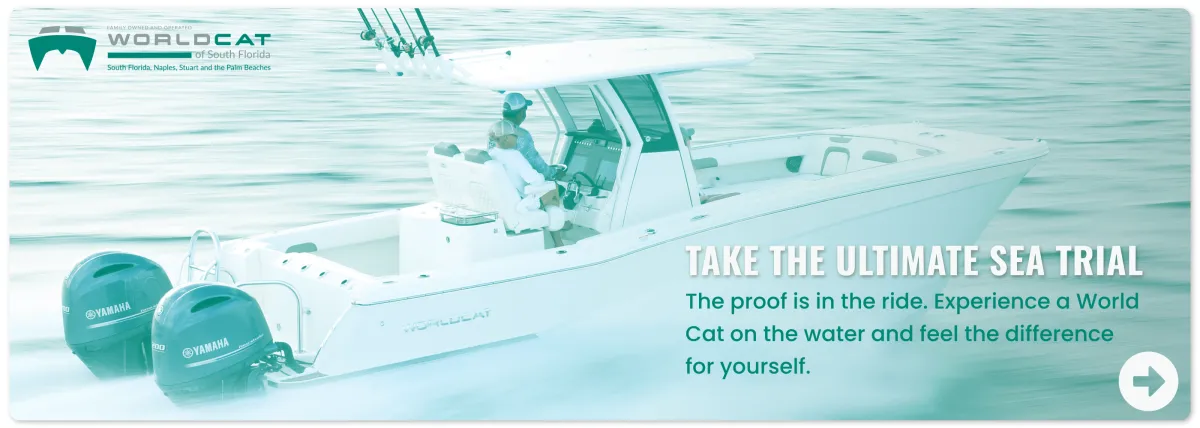 As South Florida’s premier World Cat dealer, we’re here to help you discover the smoother ride, unmatched stability, and lasting performance that make World Cat the #1 selling outboard power catamaran brand in the world.